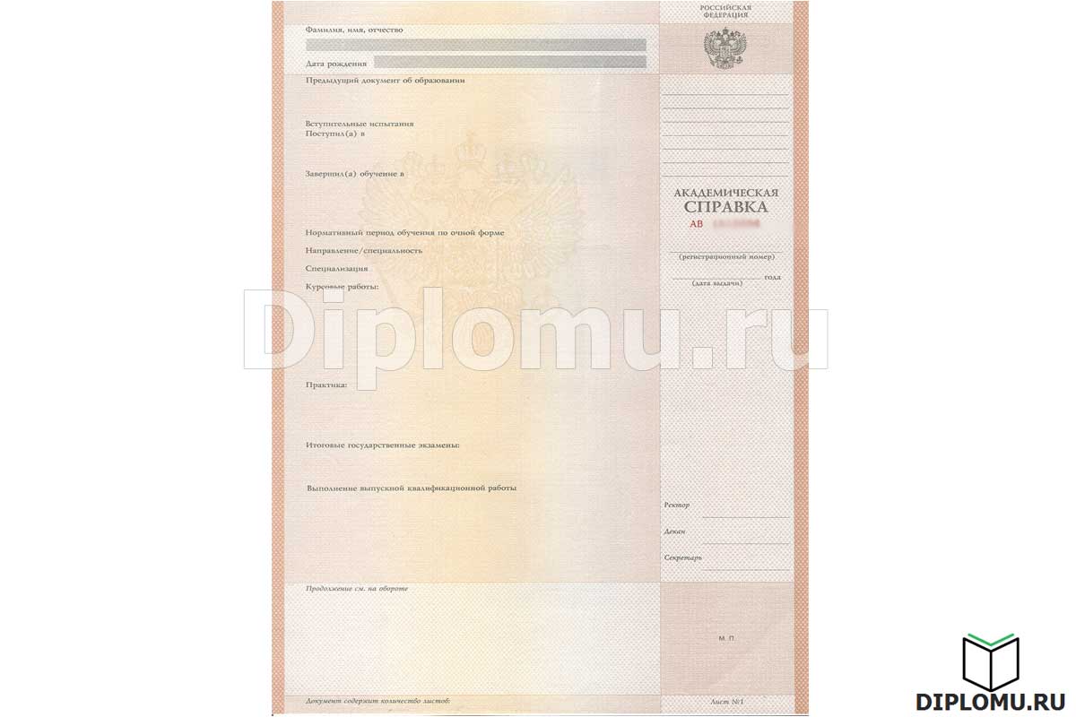 Академическая справка не свидетельствует о присвоении квалификации и выдается студентам, которые не окончили обучение в ВУЗе. Получить студент её может вне зависимости от того, сколько курсов закончил, и в нее вносятся отметки об экзаменах по всем сданым дисциплинам, курсовым работам, пройденным практикам. На нашем сайте Вы можете купить академическую справку из любого нужного Вам ВУЗа, в том числе для перевода в другой ВУЗ.