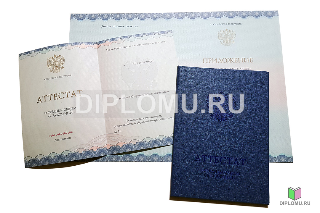 - Комплект: Аттестат + твёрдая обложка + приложение